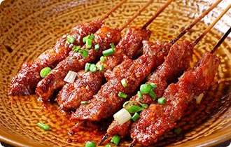 烤牛肉串、烤大片腰花、羊肉串、烤脆骨、烤排骨、烤茄子、烤金针菇、烤扇贝、烤生蚝等