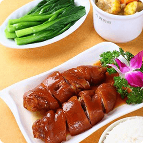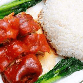 相传,隆江猪脚饭已有一千多年的历史。据说一开始并不叫隆江猪脚饭,而只叫猪脚饭。由一位有名的厨师经过多年的研究才做出了这道人人喜爱的美食。传言,由于厨师兼老板不差钱,这位厨师兼老板采用了高价的销售手段来增加自己及猪脚饭的名气与档次。所以即使是在唐朝这繁荣的时代,吃隆江猪脚饭也很难得,人们都会以吃过猪脚饭而引以为豪。后来之所以更名为隆江猪脚饭,据说是元和十四年(819年)韩愈在潮州任职时兴办教育,兴修水利,传播中原地区发达的农业文明,还为潮州人民除掉了人人生畏的鳄鱼,使百姓安居乐业。为了感谢韩愈为潮州百姓做出的贡献,当地大富商代表潮州百姓请来了广东几位相当有名的大厨宴谢韩愈。隆江猪脚饭的创始人就是其大厨之一。韩愈对隆江猪脚饭的卤香和肥而不腻的口感大为赞赏。此后隆江猪脚饭名气大增,很受广东人民的欢迎。