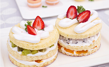 裱花基本功:鲜奶油的识别、冷藏、打发、花边手法:绕、挤、寿桃边、抖(毛毛虫花边)、拉(宝塔边)、编(编花篮花边)、蛋糕坯:直坯、圆坯、字体等